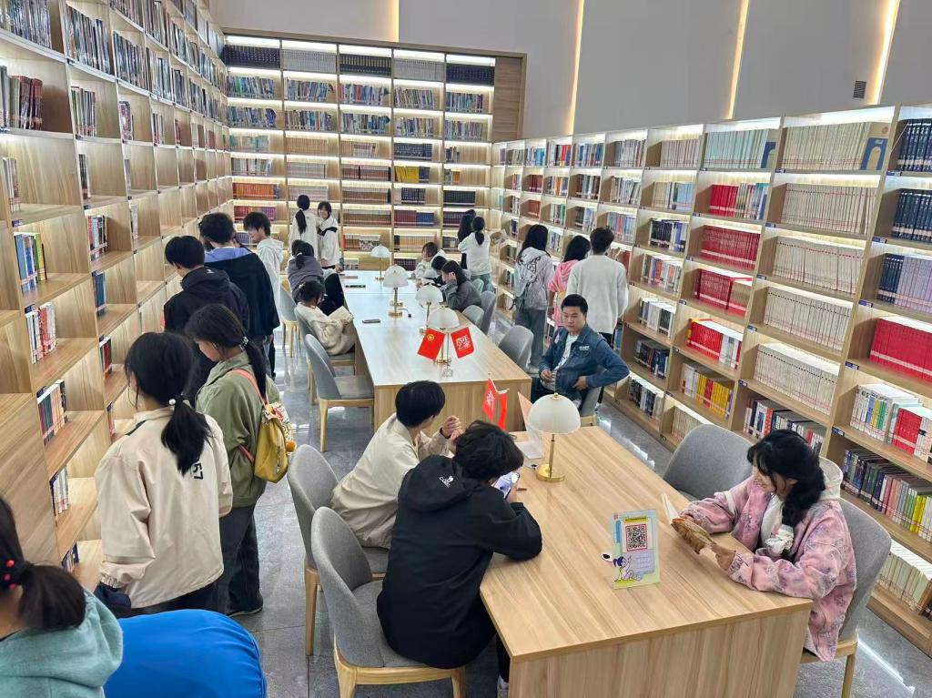 活动中,丹江口市图书馆工作人员带领师生们参观了图书馆的各个阅览区域,认真指导学生如何办理借阅证、图书借阅流程,体验自助查询、数字资源阅读等智慧化服务。同学们边听边有秩序地参观,了解图书馆各功能区的分布情况。馆内优雅舒适的环境、先进的设施和丰富的图书给大家留下深刻的印象。阅读区内,学子们或站立,或静坐,或轻声交流,或埋头专注,尽情地遨游在知识的海洋。