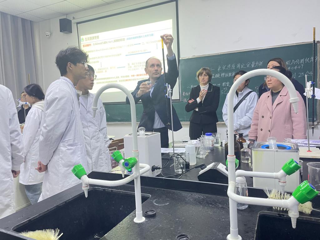 4月8日上午,亚历山大、娜塔莉亚教授深入实训课堂,实地观摩实验操作,并围绕实验原理、规范及数据处理等方面与生态环境学院专业课老师进行深入交流和探讨,为在国际班教学中引入国际化视野与实践经验。